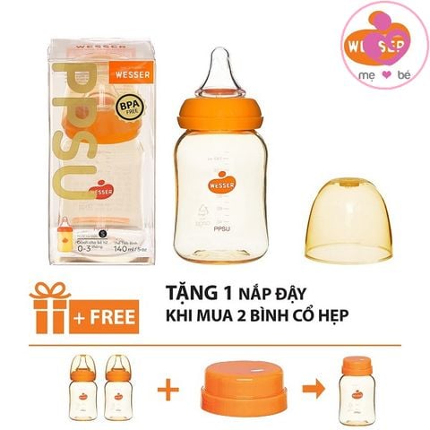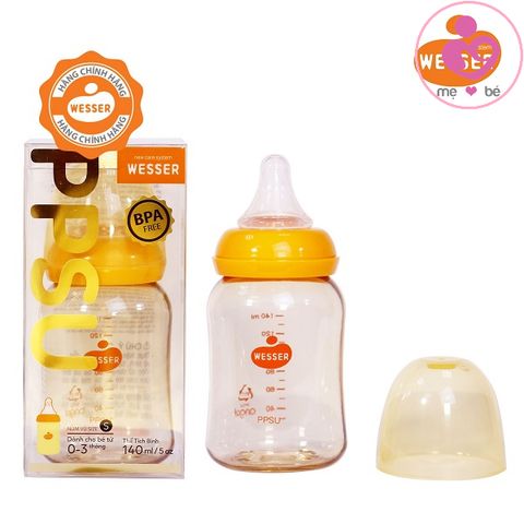 Bình sữa Wesser PPSU cổ hẹp dung tích 140ml phù hợp dành cho bé từ 0 – 3 tháng