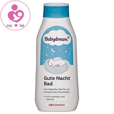 Có câu: “Ăn ngủ được là Tiên,” và đúng là vậy, giấc ngủ đối với trẻ nhỏ cực kỳ quan trọng, vì đó là thời gian lý tưởng để bé phát triển trí não và cơ thể. Sữa tắm Babydream Gute Nacht Bad của Đức, với hương oải hương nhẹ nhàng, là sản phẩm được nhiều bà mẹ tin dùng và yêu thích. Đây là sản phẩm nội địa Đức của thương hiệu Babydream, phân phối qua tập đoàn Rossmann - một trong những tập đoàn bán lẻ hàng đầu ở Đức và phổ biến khắp châu Âu với đa dạng các sản phẩm chăm sóc em bé, sức khỏe, làm đẹp, và vệ sinh. Sữa tắm Babydream Gute Nacht Bad được chiết xuất hoàn toàn từ thiên nhiên, chủ yếu từ lavender và hoa cúc, rất an toàn và hiệu quả cho bé từ sơ sinh. Sản phẩm giúp bé thư giãn, làm dịu giác quan và cơ thể, tạo điều kiện cho bé ngủ ngon và sâu giấc. Không thử nghiệm trên động vật và được các mẹ Đức tin dùng nhiều năm với đánh giá 5 sao trên các trang web lớn. Sữa tắm này là giải pháp lý tưởng cho những mẹ có bé gặp khó khăn trong giấc ngủ, giúp bé dễ dàng ngủ ngon và không còn lo lắng về trằn trọc hay quấy đêm.