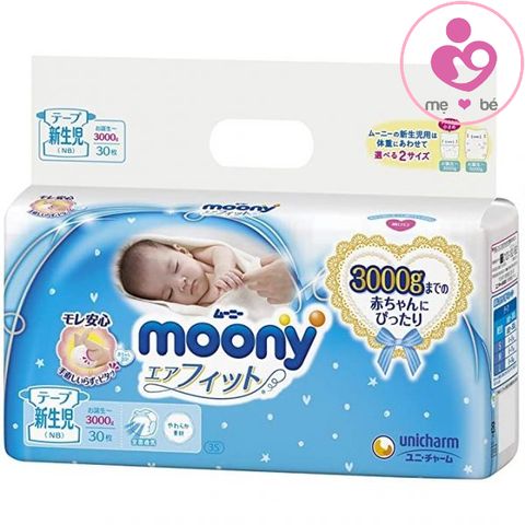 - Dòng sản phẩm tã dán cao cấp Moony cho trẻ sinh non và nhẹ cân dưới 3kg size S sản xuất tại Nhật với tiêu chuẩn khắt khe của thị trường Nhật được thiết kế dành riêng cho bé dưới 3000g để ôm vừa vặn cơ thể bé, khiến bé thoải mái dễ chịu và ngăn chặn hoàn hảo việc tràn chất thải ra ngoài hay tràn lên rốn bé khi bé vận động. Việc đóng bỉm size to hơn có thể khiến chất thải tràn ra ngoài hoặc chạm lên rốn (có thể gây kích ứng, nhiễm trùng) khi bé vận động mạnh.
