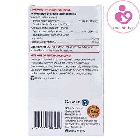 - Viên uống trị suy giãn tĩnh mạch Caruso’s Natural Health Veins Clear.nhận được những phản hồi tích cực từ rất nhiều người sử dụng. Nó là sản phẩm điều trị chứng giãn tĩnh mạch số 1 tại Úc và được sử dụng rộng rãi trên khắp Thế Giới.