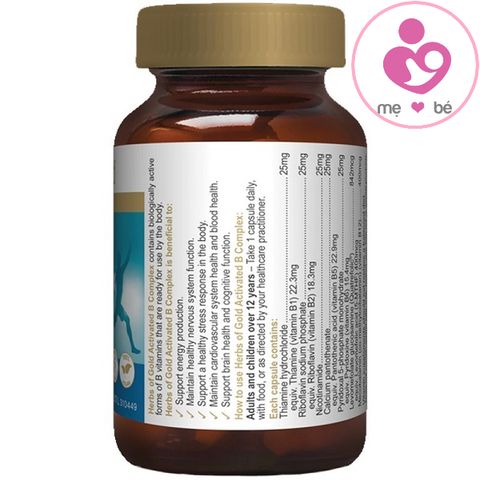 - Viên uống bổ sung nhóm vitamin B Herbsofgold Activated B Complex chứa các vitamin B hoạt hóa, bao gồm B2, B6, methylfolate (folate) và mecobalamin (B12), giúp hỗ trợ sản xuất năng lượng và hỗ trợ duy trì sức khỏe nói chung.