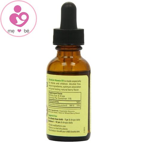 - Sản phẩm siro bổ sung vitamin D3 Childlife Vitamin D3 được rất nhiều bà mẹ trên thế giới cho con sử dụng bởi công dụng lâu dài và an toàn của sản phẩm này