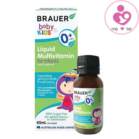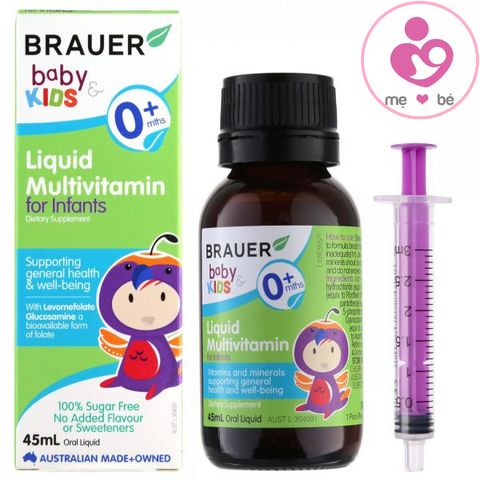 - Vitamin tổng hợp Brauer Baby & Kids Liquid Multivitamin 0+ chai 45ml của Úc được điều chế dành cho trẻ sơ sinh từ 0 – 12 tháng tuổi. Chính vì vậy, thành phần vitamin và hàm lượng đã được đạt tiêu chuẩn sức khỏe, đồng thời giúp bé hấp thu tốt.