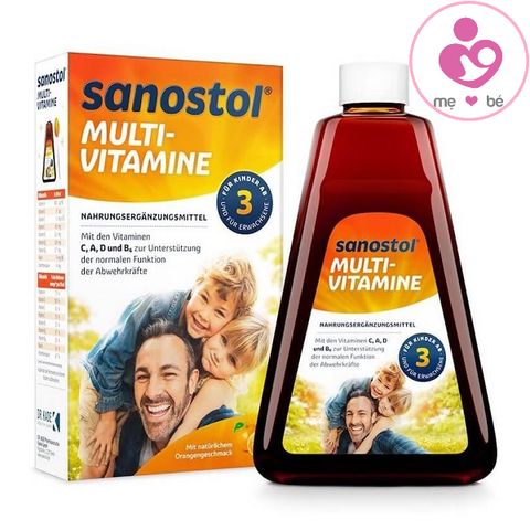 - Sanostol Multi-vitamine số 3 bổ sung 9 loại vitamin thiết yếu mà cơ thể bé không thể tự sản xuất. Giúp trẻ bị còi xương, suy dinh dưỡng bắt kịp cả chiều cao và cân nặng với bạn bè cùng chăng lứa.