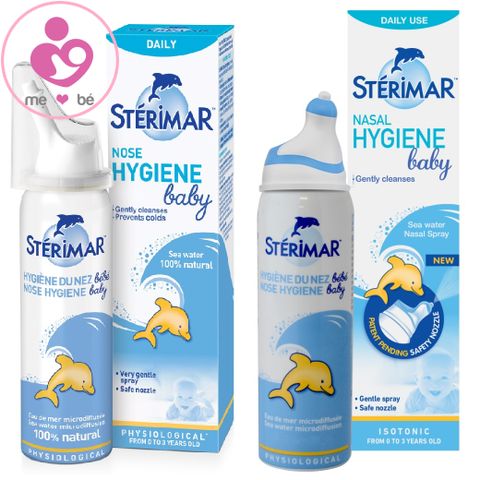 Sterimar là thương hiệu nước muối biển sinh lý nổi tiếng tại Pháp, được sản xuất theo quy trình đạt chuẩn chất lượng. Sản phẩm Stérimar Nasal/Nose Hygiene Baby được thiết kế dành cho bé từ 0 tháng tuổi trở lên, được nhiều bà mẹ trên toàn thế giới tin dùng. Hộp sản phẩm có màu trắng đặc trưng với hình cá heo màu vàng, khiến nó thường được gọi là “Nước muối xịt mũi cá heo vàng”.